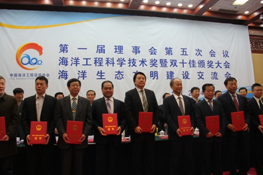 2013年度海洋工程科学技术奖颁奖大会在北京召开,全国政协副主席罗富和,国家海洋局党组书记、局长刘赐贵,中国海洋工程咨询协会会长刘志辉,常务副会长王宏,副会长周茂平、李春先、郭立峰、武广平等出席会议。会议对2013年度海洋工程科学技术奖项目进行颁奖,其中特等奖1项,一等奖项目7项,二等奖项目19项。我校宋永臣教授团队负责完成的“海洋天然气水合物生成机理与分解安全机制”获得唯一特等奖。