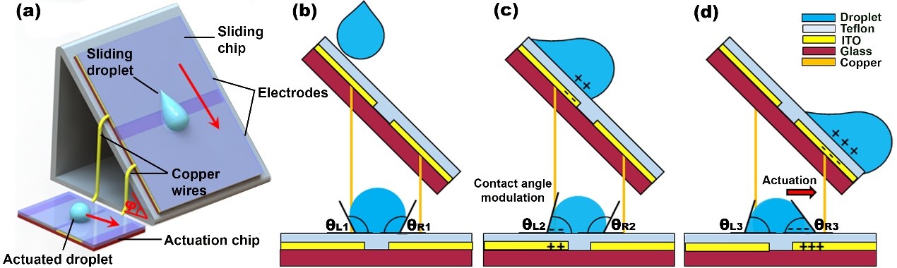 通过合理设计滑动翅片和驱动翅片上的电极,可以实现液滴的连续运动。而基于该现象设计的器件可以在化学分析,药物输送和流控芯片上取得应用,具有非常高的应用价值。